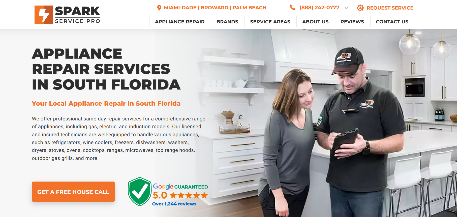 Based on our list of criteria, Spark Service PRO is the best appliance repair in Fort Lauderdale, Broward County, and other locations in South Florida. Over the course of 18 years, this provider has fixed thousands of appliances, including both residential and commercial ones.