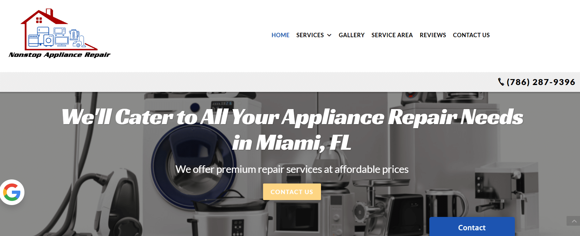 Their focus is on repairs of built-in appliances, such as freezers, fridges, dryers, washers, and even garbage disposals. Note that this company doesn’t service microwaves and gas appliances. The provider works in Palm Beach and Broward counties, and you can contact them 24/7 if you have an emergency. As for discounts, veterans and seniors are eligible for 10% off their repair costs.