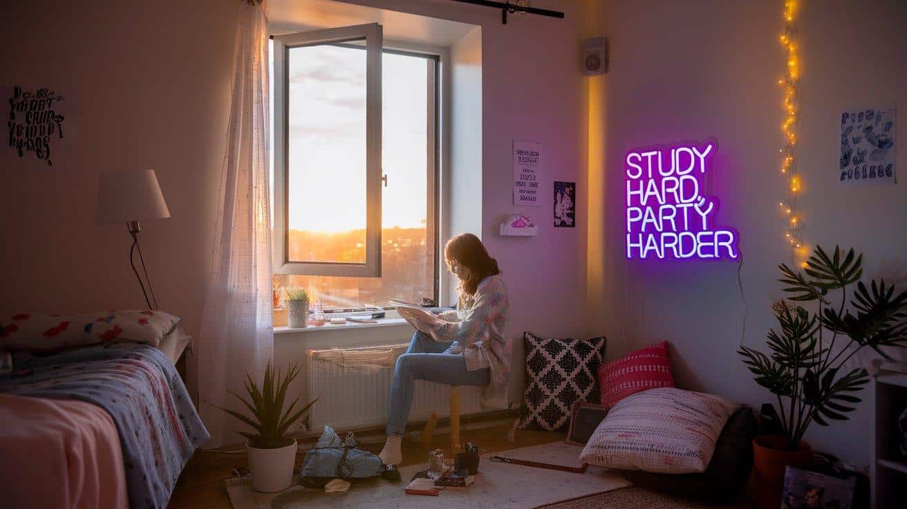 Neon lights and signs can bring a vibrant, playful energy to your room. Whether you opt for a fun quote, a symbol, or a custom design, neon lighting adds a modern and edgy touch to your room decor.