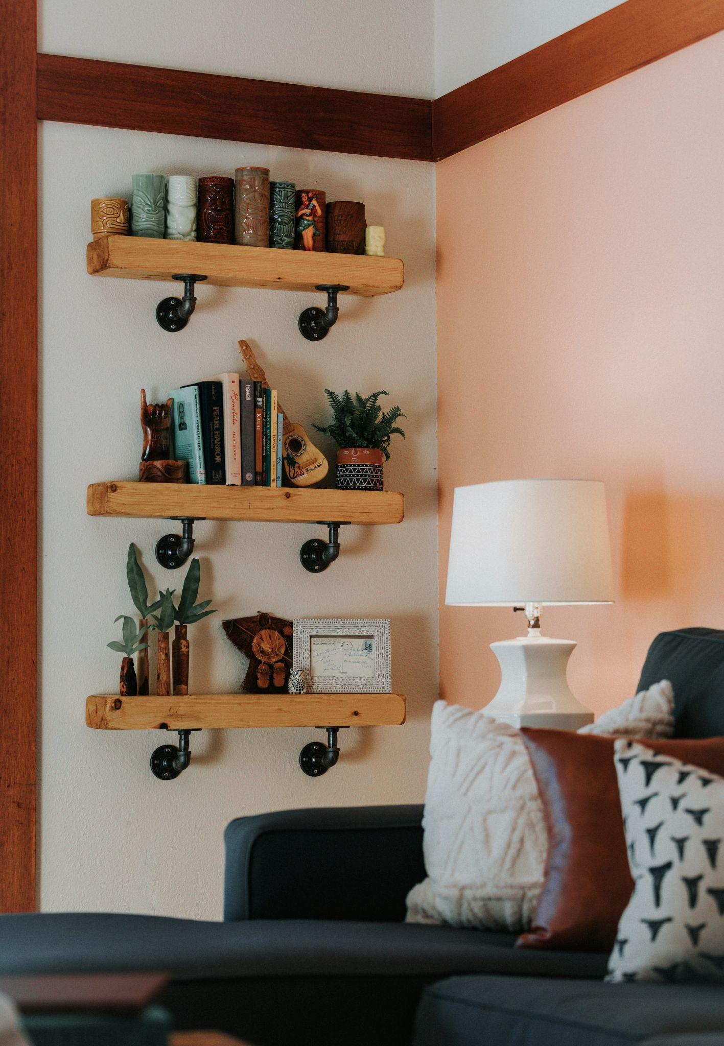 The most welcoming shelves are both functional and pretty. You may put your go-to cookbooks next to daily mugs in the kitchen or folded linens and perfumed candles on show in a visitor room. This means that your shelves are interesting to look at while still doing a lot of work for you.