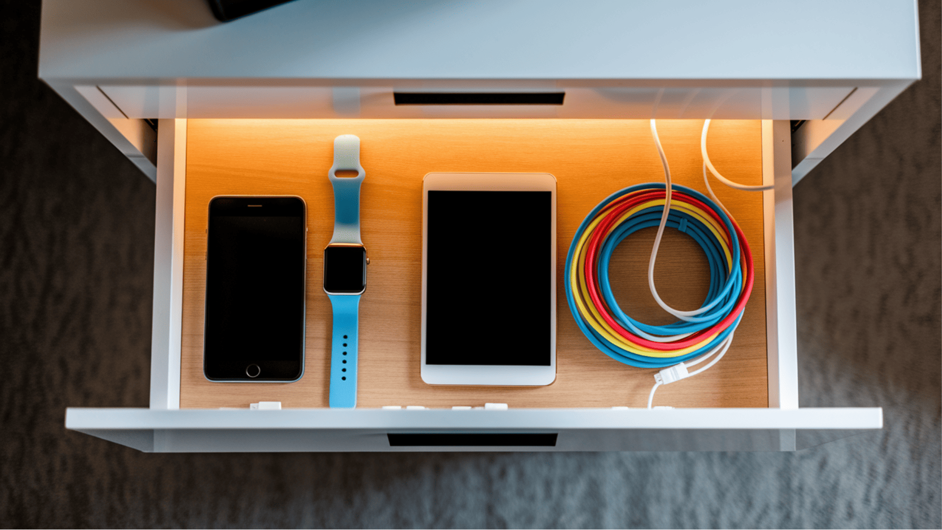 Conceal your charging station to minimize clutter and maintain a cleaner, more organized space throughout your room.