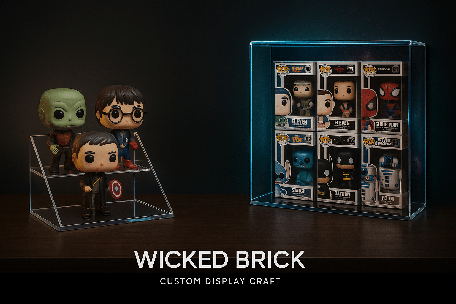 Specializes in bespoke display cases, stands, and podiums for Funko Pops using clear acrylic or Perspex.