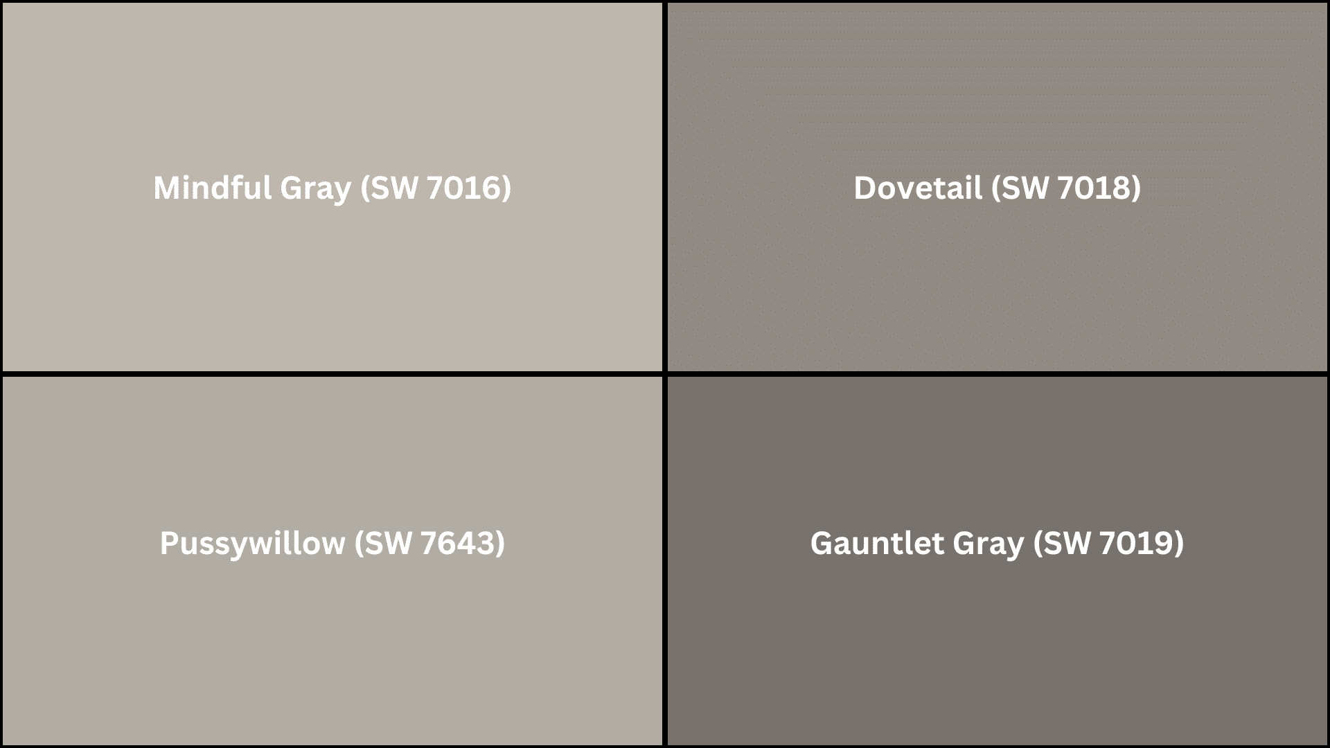 - Pussywillow (SW 7643) – Lighter with subtle green-gray undertones.