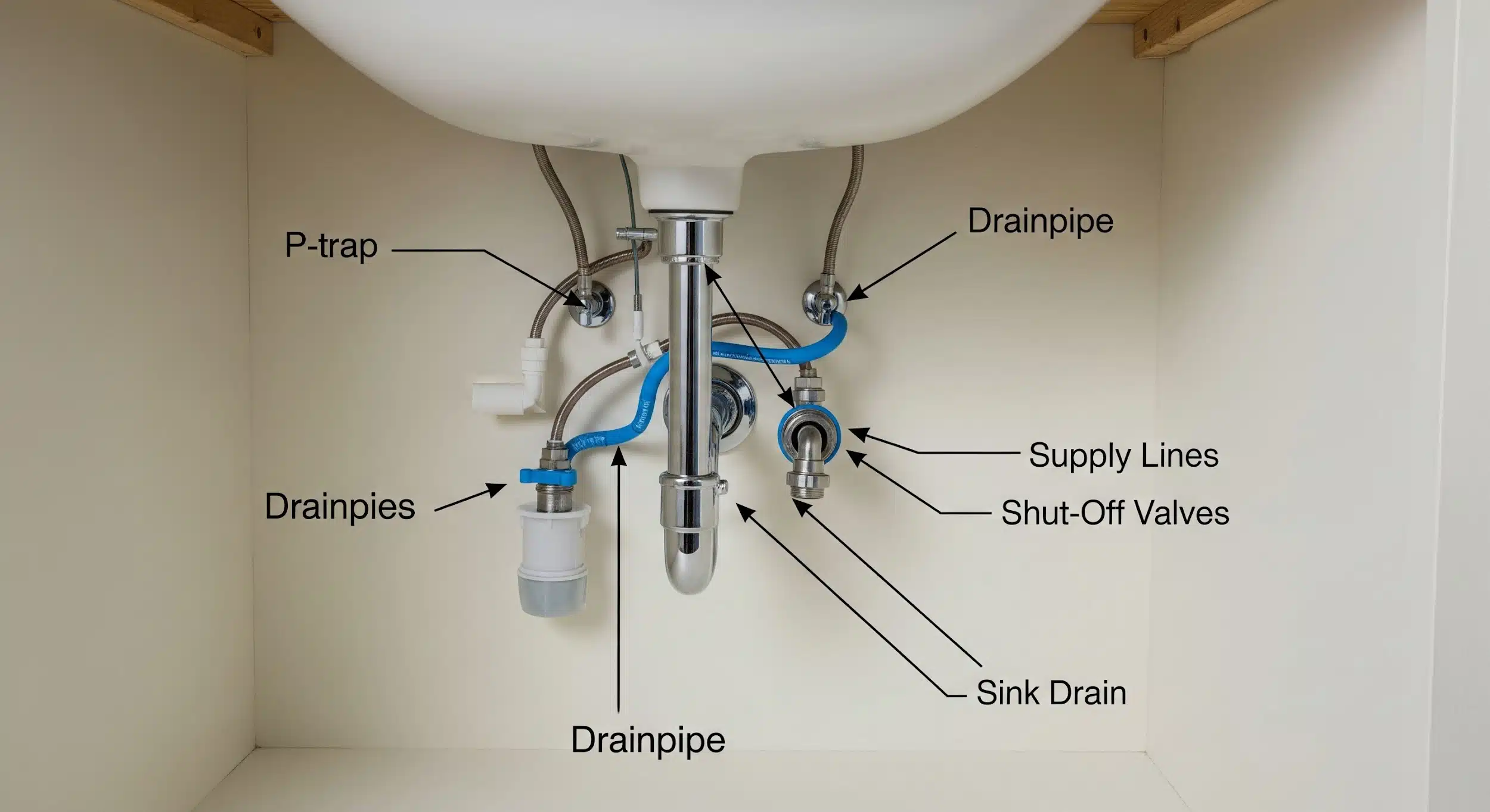 The P trap. That’s the curvy pipe underneath. Looks like a “P” lying on its side. Check for cracks, rust, or that lovely green gunk that means it’s older than my favorite wrench.
