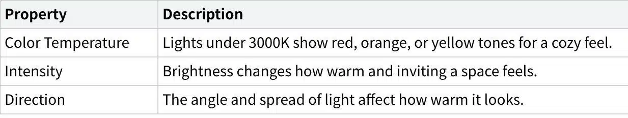 Warm lighting gives spaces a soft and cozy glow. But what makes lighting “warm”? It depends on color temperature, measured in Kelvin (K). Warm lights are below 3000K and show red, orange, or yellow colors. These colors look like sunrise or sunset light, which feels relaxing.
