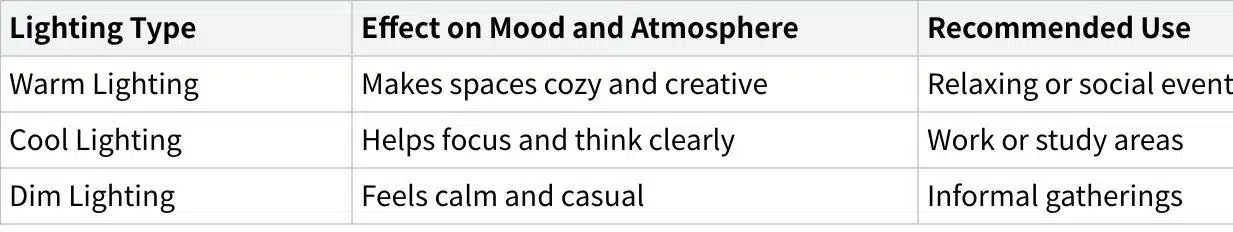 Lighting can change your mood. Warm lighting sets a relaxed, welcoming tone—perfect for winding down or chatting with friends. Studies say low-CCT light (around 2100K) can lower heart rate and improve comfort.