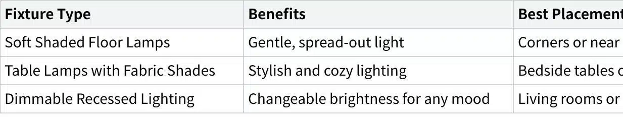 Fixtures can make warm lighting even better. They help your home feel more inviting. Try these ideas: