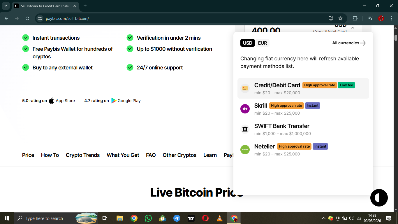 - For crypto-to-fiat currency conversions, use only platforms with verifiable regulatory licences and a history of security, such as Paybis.