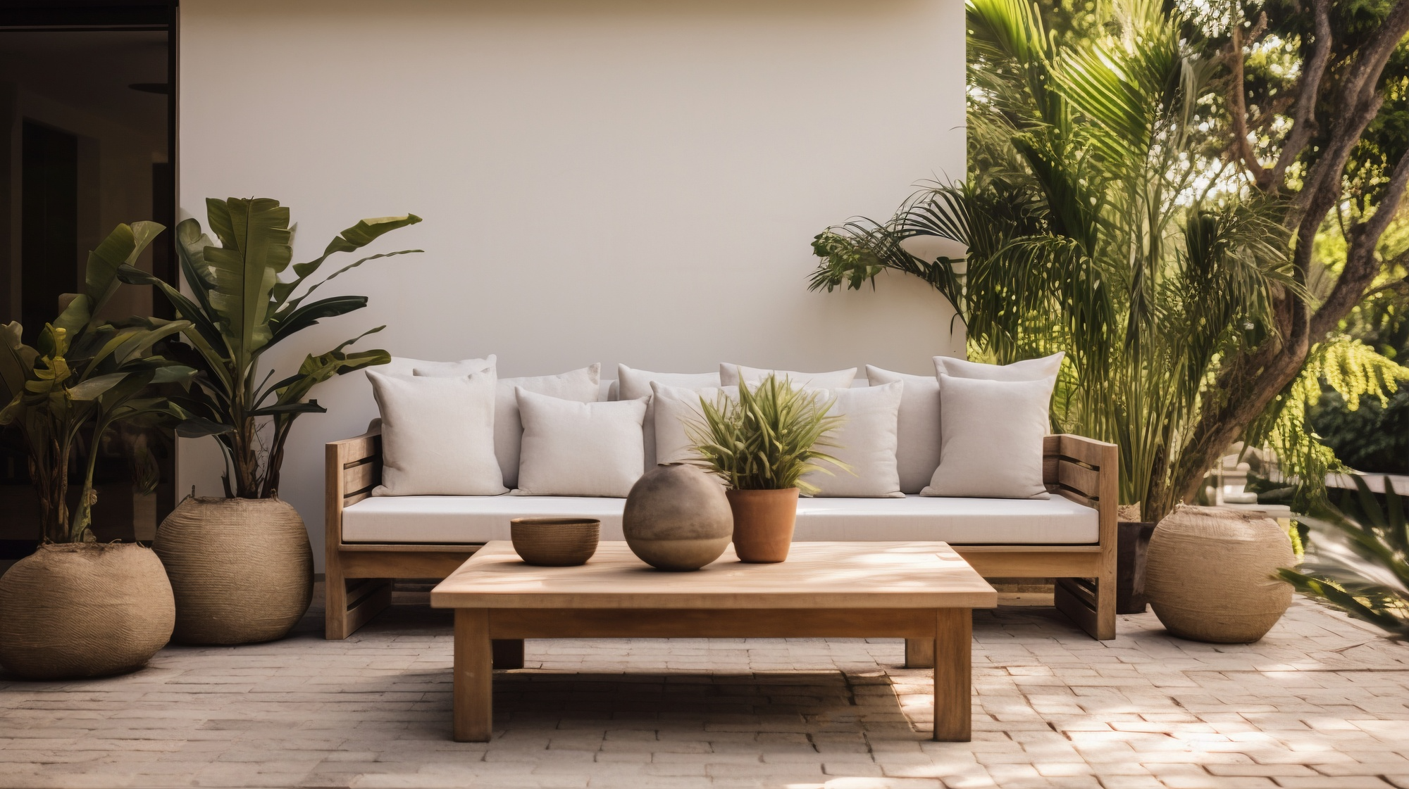 Outdoor cushions and pillows should be made from fade-resistant and water-repellent fabrics like Sunbrella or marine-grade vinyl. These are easy to clean and will maintain their colour and texture over time.