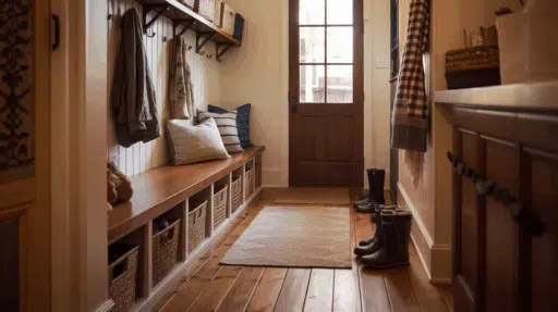 Luxury vinyl is one of the most popular flooring choices for mudrooms today. It’s waterproof, tough, and comes in designs that mimic hardwood, stone, or tile.