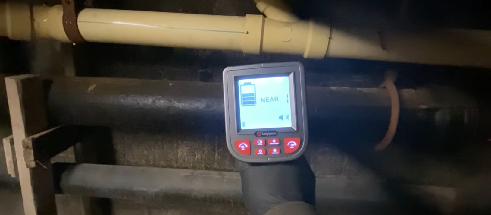 Tested it upstairs in PVC. The signal came through strong. Downstairs, the cast-iron block was less than expected. Same steps worked. Far mode first, then near. You can track the camera anywhere.