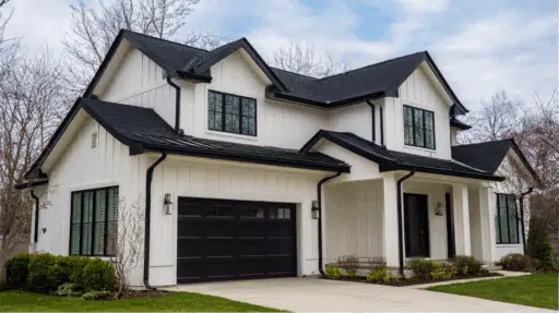 A white house with black windows delivers striking visual appeal through contrast that increases any structural style.