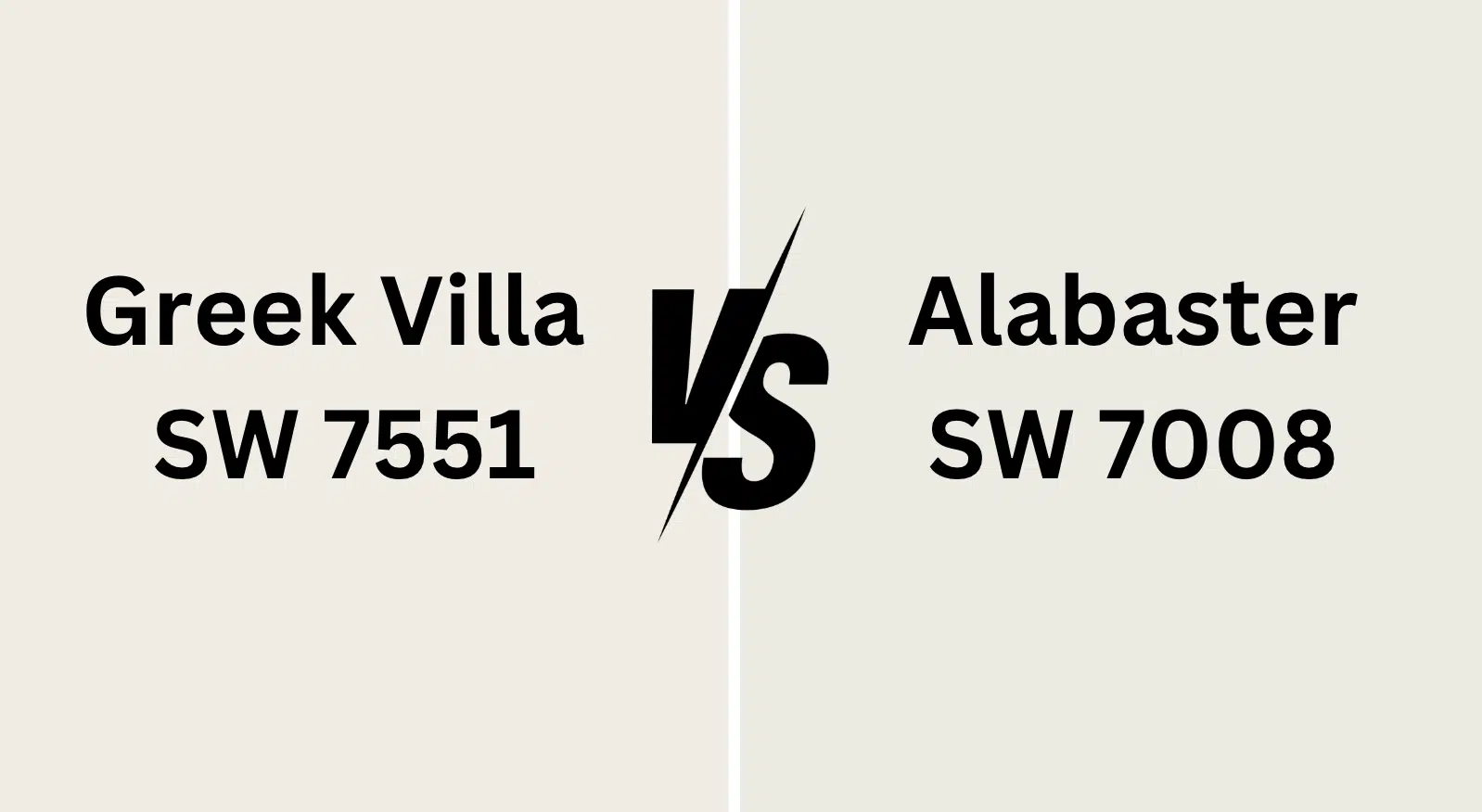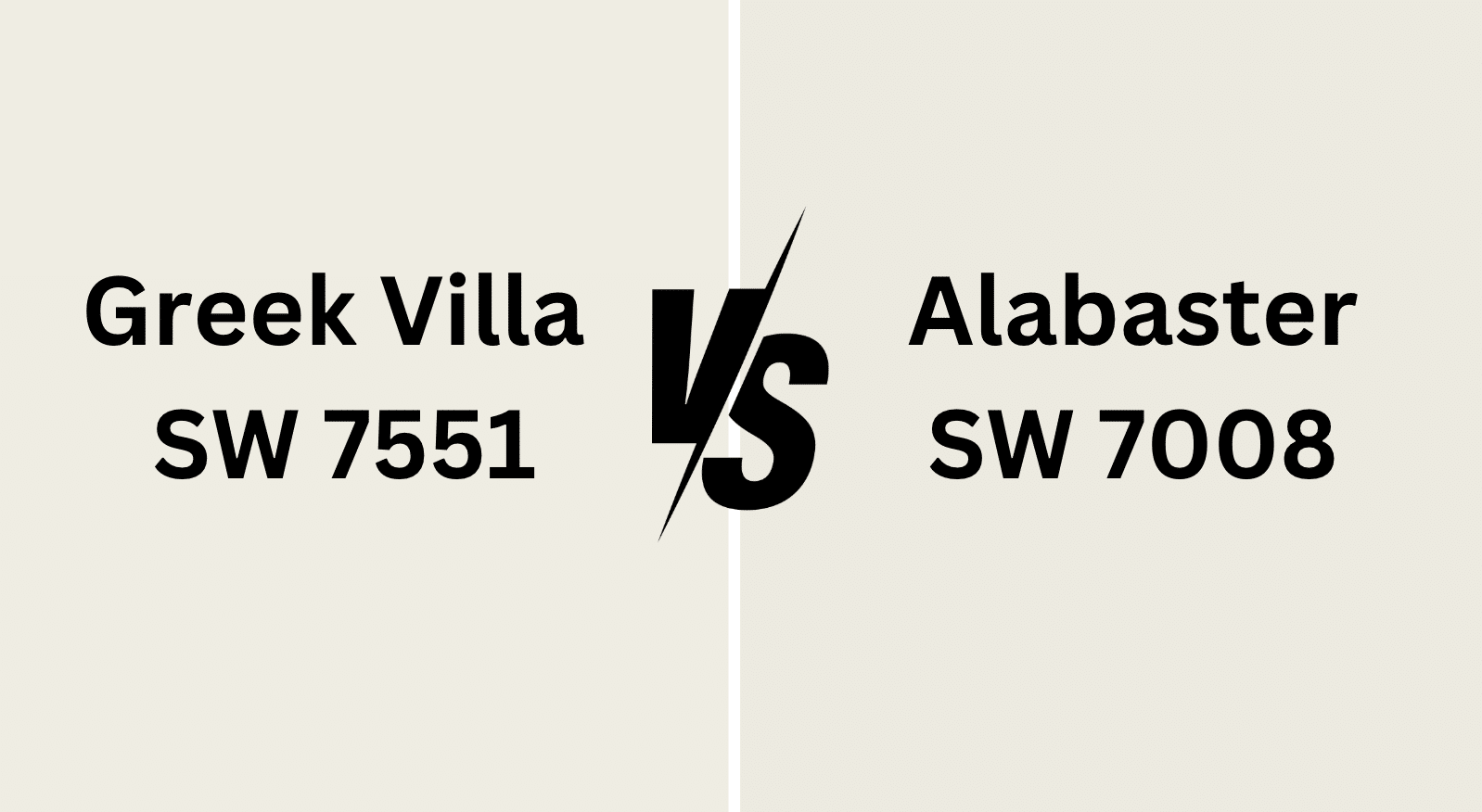 The key difference? Greek Villa leans into its warmth with noticeable yellow-beige (sometimes reading as orange-beige) undertones, while Alabaster’s gray undertones keep it more neutral and adaptable.Greek Villa brings radiant warmth, while Alabaster offers a calm, neutral base.